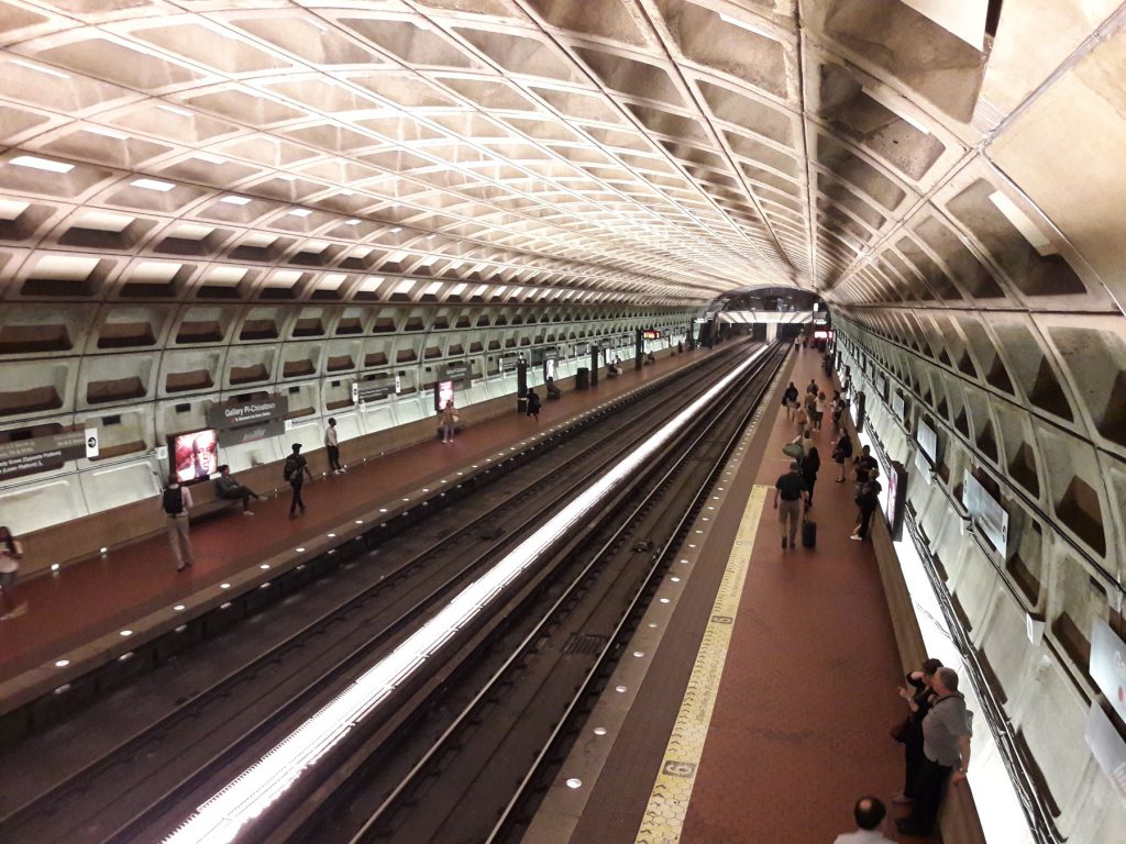 Uprzedzam, wstawka transportowa. Metro waszyngtońskie jest stosunkowo młodym systemem. Pierwszą nitkę otwarto w 1976 roku, a zakładany docelowy układ sieci osiągnięto w 2001 roku. Dziś funkcjonuje 6 linii, każda oznaczona innym kolorem: czerwona, niebieska, pomarańczowa, żółta, zielona i srebrna. Stacje są jakże odmienne od nowojorskich! Przestrzenne, z wysokimi stropami, czytelnie oznakowane, czyste i jednolite architektonicznie.