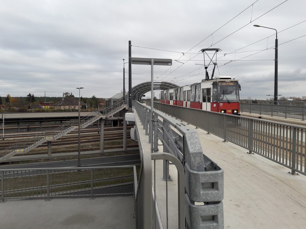 Dworzec Wschód to przykład zintegrowanego centrum przesiadkowego. Być może forma nieco przerasta tutaj treść, niemniej zamysł jest pozytywny. Estakadą pociągnięta jest linia tramwajowa, natomiast pod nią znajduje się dworzec kolejowy. Wysiadając z tramwaju wystarczy zatem zejść po schodach lub zjechać windą i „o suchej stopie” można wsiąść do pociągu. Smutny jest jedynie widok dużej, trójtorowej pętli „Wyścigowa” zaraz obok, bowiem po oddaniu do użytku estakady w 2016 roku i rozbudowie sieci do Fordonu, stała się na co dzień bezużyteczna. Podobnie niezbyt optymistyczny los spotkał dalszą pętlę „Przylesie” (również trójtorową), jednak ta, co ciekawe, od początku swojego istnienia z założenia jest awaryjną. Jak doczytałem na stronie Urzędu Miasta, pozwala ona na zawracanie w tym miejscu wszystkich tramwajów obsługujących połączenie Fordonu z innymi dzielnicami Bydgoszczy. W przypadku wyłączenia z ruchu estakady nad stacją Bydgoszcz Wschód, wystarczy zorganizować zastępczą komunikację autobusową pomiędzy tą pętlą i pętlą przy ul. Wyścigowej (zwłaszcza, że obie mają też miejsce do nawracania autobusów!). Muszę przyznać, że jestem pod nie lada wrażeniem: mają rozmach, jeśli budują trójtorowe pętle wyłącznie dla awaryjnych sytuacji.