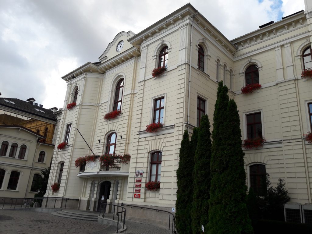 Ciężko nawet zrobić zdjęcie ratuszowi w jego całej okazałości, bo przez ogrodzenie placu budowy nie można się wystarczająco oddalić.