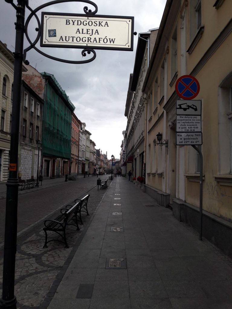 Zaraz za skrzyżowaniem z ulicą Jana Kazimierza zaczyna się Bydgoska Aleja Autografów. I tak, swoje autografy zostawili tutaj na przykład: Irena Szewińska, Zbigniew Boniek, Lech Wałęsa, Tomasz Gollob, Irena Santor oraz wiele innych osób – nie zawsze oczywistych.