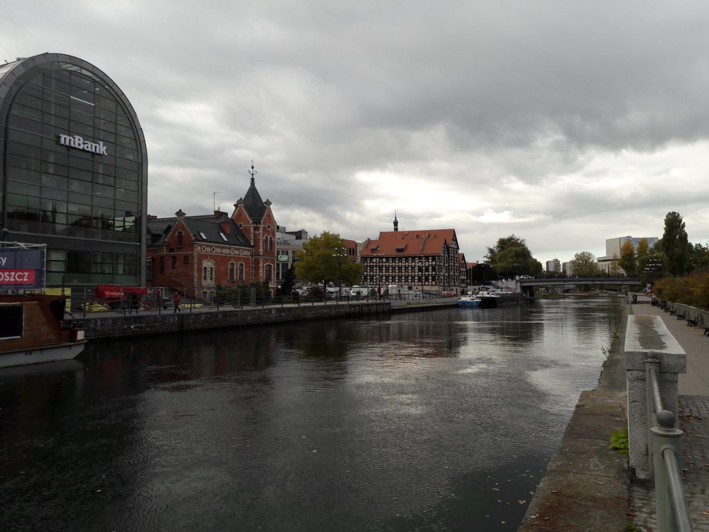Przechodzę mostem Jerzego Sulimy-Kamińskiego. Robię zdjęcie, które umieściłem jako główne tego wpisu. Krótki spacerek Starym Portem. Podziwiam Spichlerze nad Brdą oraz „Szklane Spichlerze”, uchodzące za jedną z bardziej udanych realizacji architektonicznych w Polsce po 1989 roku.