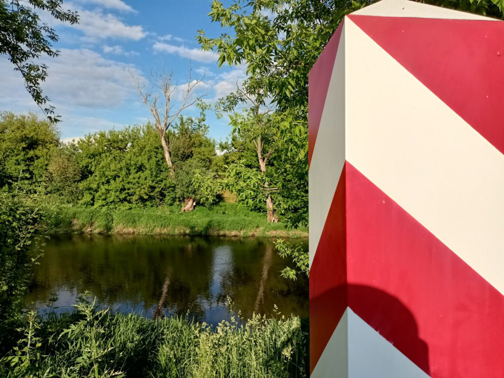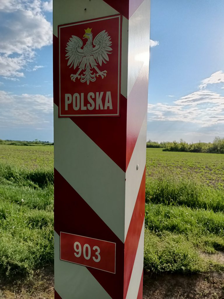 W razie czego, pamiątkowe zdjęcia robimy z każdą możliwą tablicą, po czym wyruszamy na wyprawę do mitycznego słupka granicznego nr 903 – najdalej wysuniętego na wschód. Mijamy patrol straży granicznej. Droga jest prosta (idzie się szutrówką) do momentu dojścia do rzeki. Tutaj trzeba jednak odbić w lewo. Idziemy polem. Po drodze, po stronie ukraińskiej, widać stalowy most kratownicowy na rzece Ług, która w tym miejscu wpada do Bugu.