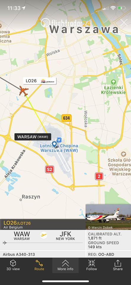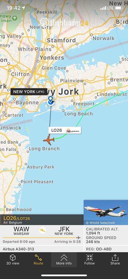 Znając wcześniej numery lotów Maćka, na aplikacji flightradar24.pl obserwowałem jego loty: z Lublina do Warszawy i następnie do NYC.